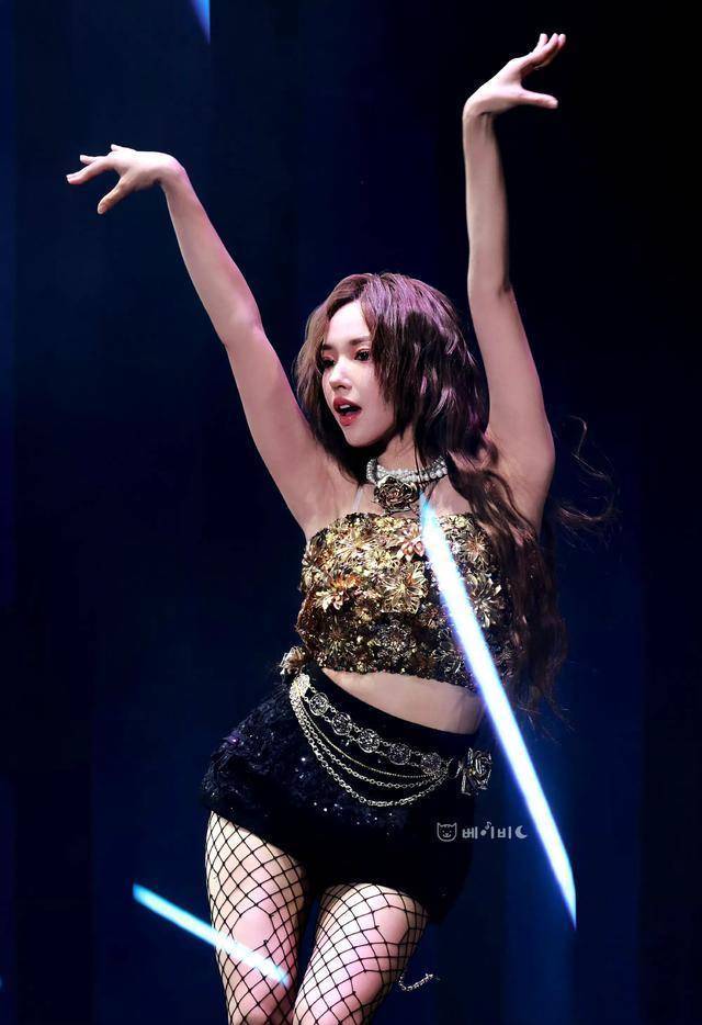 黑色的发亮短裤,点缀着她的完美身材。这样的装束才是青春活力的表现,再加上她卖力的唱跳会更加的激情四射。这套装束最让人眼睛一亮的反而是她腿上的网格丝袜。